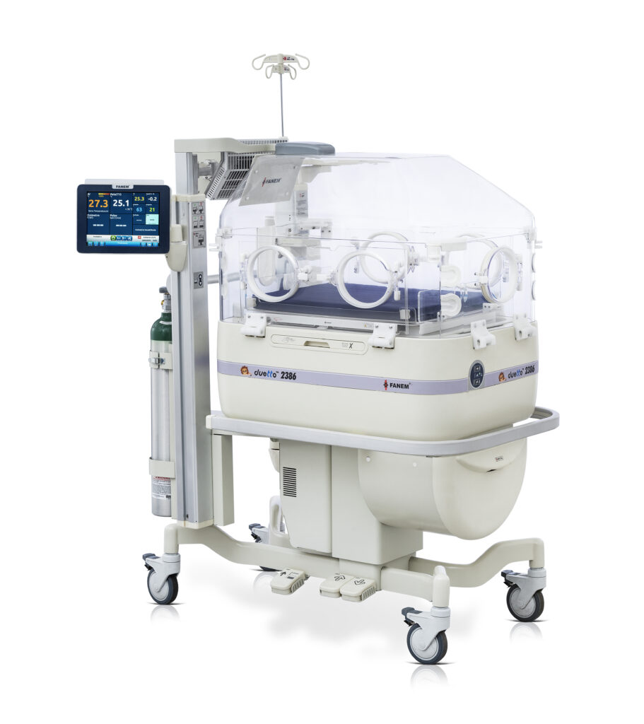 Duetto® 2386 es el primer equipo que opera tanto como incubadora neonatal como unidad de cuidado intensivo abierta de calor irradiante. Fue desarrollada con los más elevados estándares de tecnología, buscando atender las necesidades de un tratamiento amplio y seguro, en las más diversas formas de usabilidad.